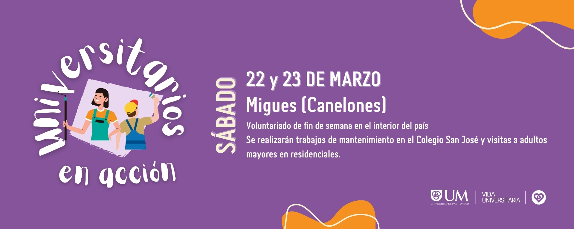 Universitarios en acción: voluntariado en el interior del paísSáb, 22/03/2025 - 18:00 Se realizarán trabajos de mantenimiento en el colegio San José y visitas a adultos mayores en residenciales
