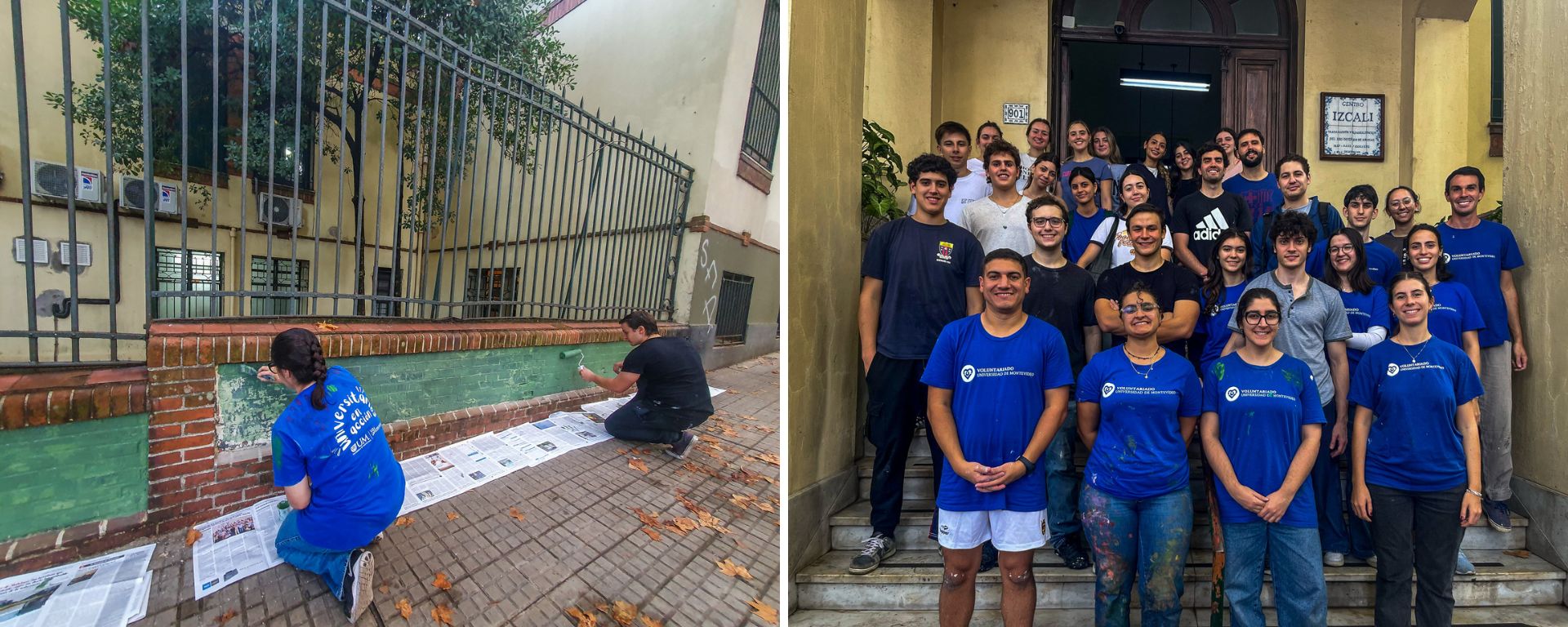 Por su parte, el Voluntariado UM (VUM) organizó dos jornadas de mantenimiento y pintura. La primera, en el Colegio Los Rosales, en el barrio Casavalle, en donde se trabajó en el patio del centro educativo. La segunda, se concretó en el Centro Izcalí, una institución que se dedica al cuidado de la salud de personas con uso problemático de drogas y/o adicciones, donde alumnos de la Lic. en Psicología UM realizan algunas de sus prácticas. Allí, los voluntarios mejoraron y pintaron el muro de la fachada del centro y acondicionaron uno de los salones multiuso.