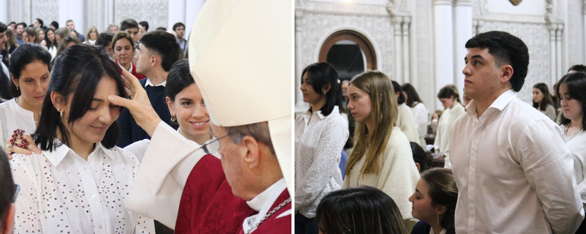 Cuando aún faltaba media hora para el inicio de la ceremonia, la iglesia de Ntra. Sra. Del Santo Rosario y Santo Domingo (Dominicos) ya estaba colmada de personas que querían acompañar a quienes daban un paso más en la confirmación de su fe. Los que se habían preparado en la UM se ubicaron a la izquierda del templo, y las de Los Pilares estuvieron a la derecha.