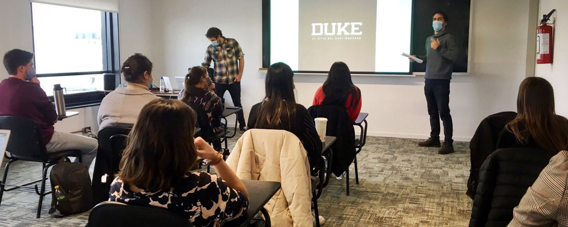 En la primera sesión, el invitado fue el periodista Pablo Zanocchi, creador y responsable de DUKE, un sitio especializado en surf. Zanocchi presentó su proyecto y luego dialogó con los participantes sobre surf, periodismo de nicho generado en Uruguay para audiencias internacionales, modelos de negocio y estrategias comerciales para medios digitales. El hito más reciente de DUKE fue la cobertura del debut del surf como deporte olímpico en Tokio, objetivo que alcanzó con el aporte de patrocinadores y de la comunidad de lectores.