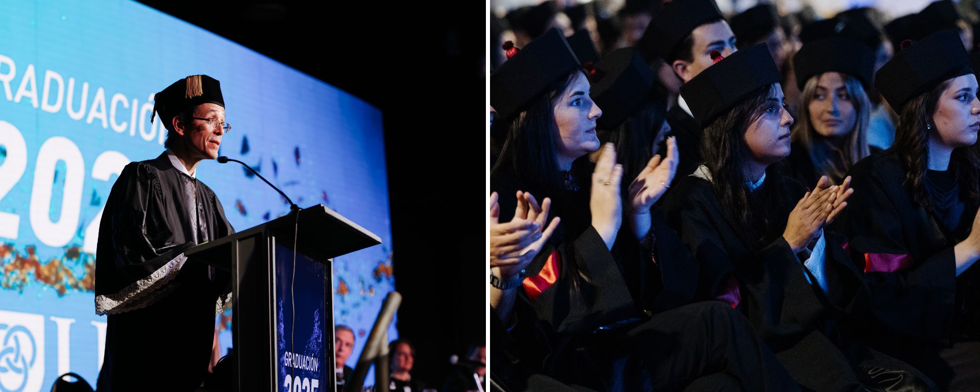 “Queridos graduados, a disfrutar con sus familias. Sabemos que es el final de una carrera universitaria que es agotadora, que seguramente querrán descansar de parciales y exámenes, pero sepan que pueden volver con nosotros con inquietudes, ideas, proyectos; siempre habrá alguien para atenderlos”, expresó el rector.