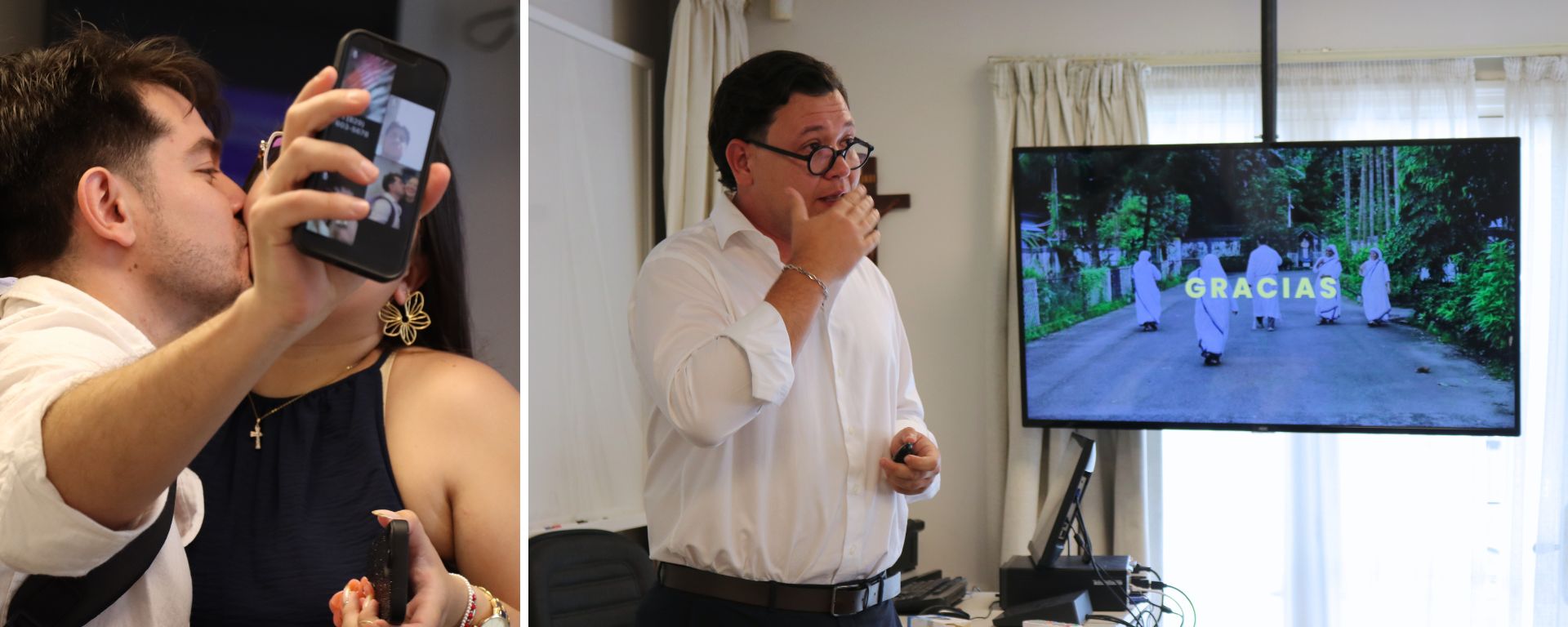 Antes de terminar, invitaron a todos los alumnos a participar de un signo, y les dieron una banda de tela -como las que se usan en graduaciones en algunas universidades- y marcadores para poder dejarse mensajes unos a otros. Los abrazos, risas y llantos demostraban alegría y satisfacción por parte de los protagonistas y de sus familiares, en algunos casos llegados desde otras ciudades del país.