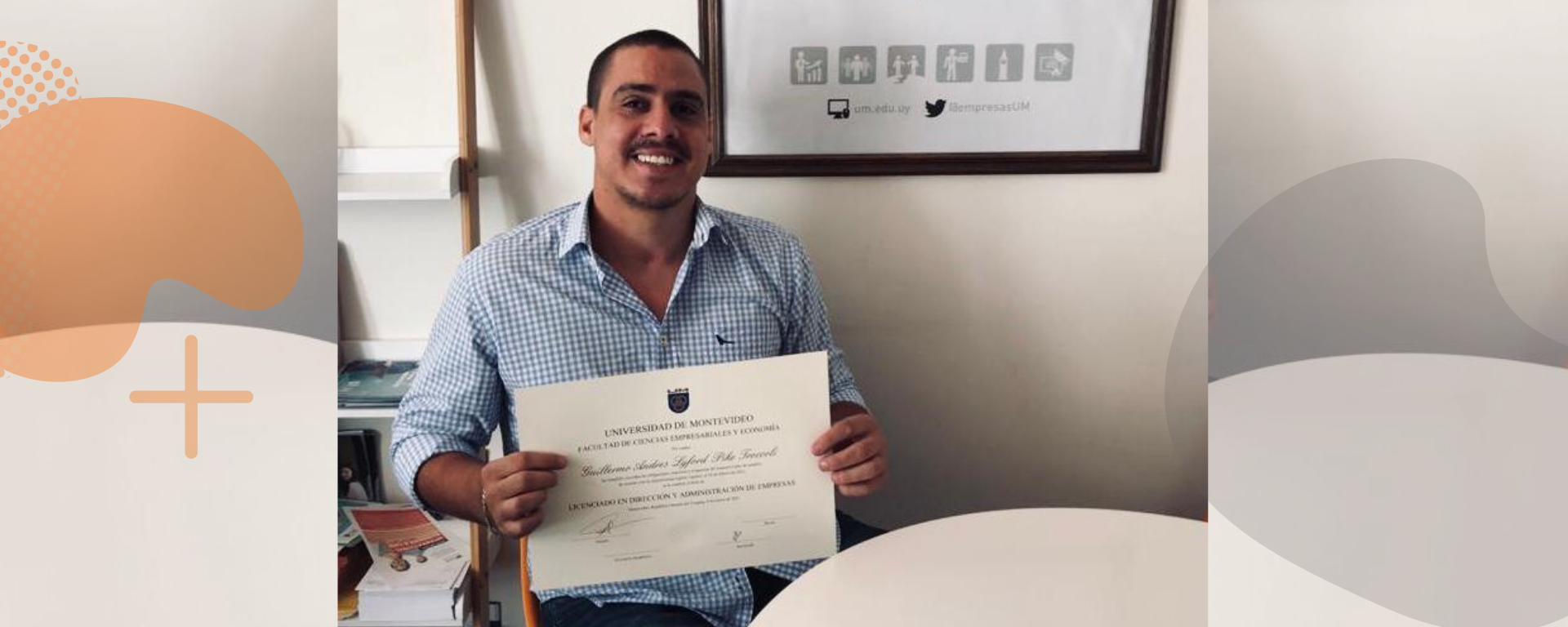 “Referido a la UM, quiero resaltar el grupo humano que encontré allí, tanto desde las autoridades, profesores y alumnos. Siempre estuvieron todos a disposición de lo que pudiera hacerme falta, con gran vocación de servicio. Cuando fui a firmar mi título, Mercedes Rovira, la vicedecana de la FCEE, me escuchó y fue a saludarme personalmente. No fue que yo me acerqué a su oficina, ella se acercó a mí. Tuvo ese detalle y para mí fue un orgullo en esta etapa de finalización de mi carrera universitaria”, comentó Guillermo. Y agregó: “De la UM me voy muy conforme de lo aprendido y de las personas que conocí, que estoy seguro de que el día de mañana podré contar con ellos, y ellos conmigo”.